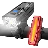 Super Bright Bike Lights Set, 1500 Lumen, 1200mAh Rechargeable, 6 Modes, USB Rechargeable & IPX4 Waterproof Bike Light Set